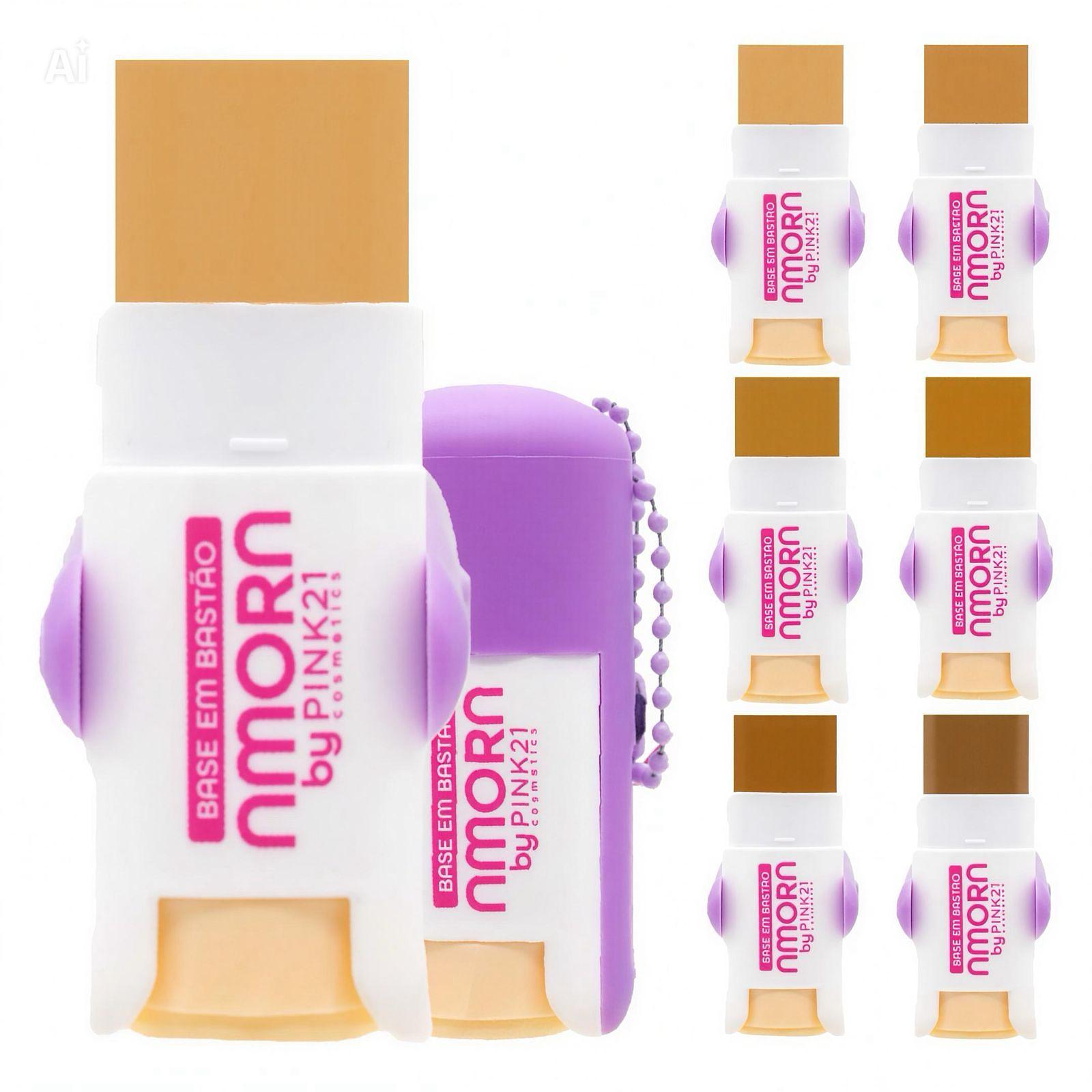 Base em Bastão c/ Chaveiro - AMORA cor 01 a 06 (10g)/ Pink21 Cosmetics (24pçs)