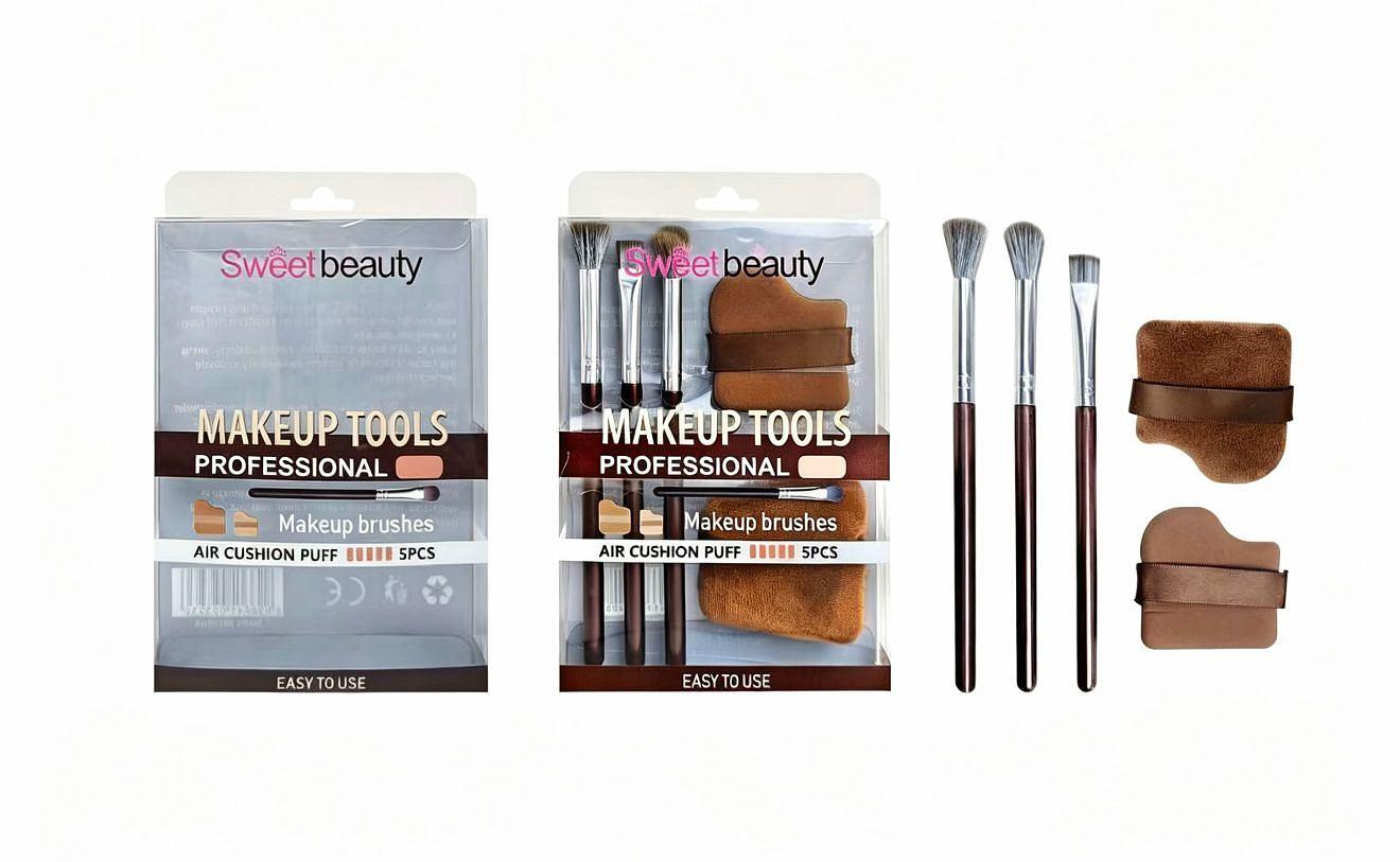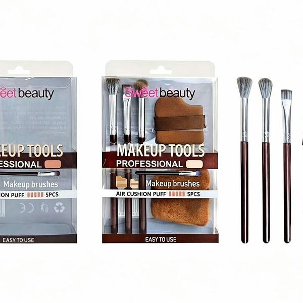 KIT Pincéis SWEET BEAUTY 5 PEÇAS POR KIT /(DÚZIA)- 3 PINCÉIS PARA SOMBRA + 2 ESPONJAS PARA PÓ