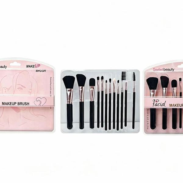 KIT Pincéis SWEET BEAUTY 12 PEÇAS por kit /(DÚZIA)- pincel de pó,pincel de blush,Pincel plano,pincel de delineador,pincel de sombra,pincel de base,pincel para corretivo,pincel delineador,escova para sobrancelha, escova de cilios ,