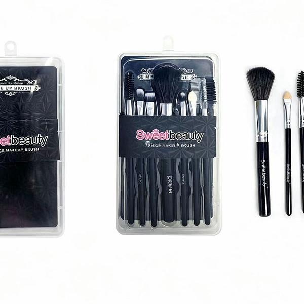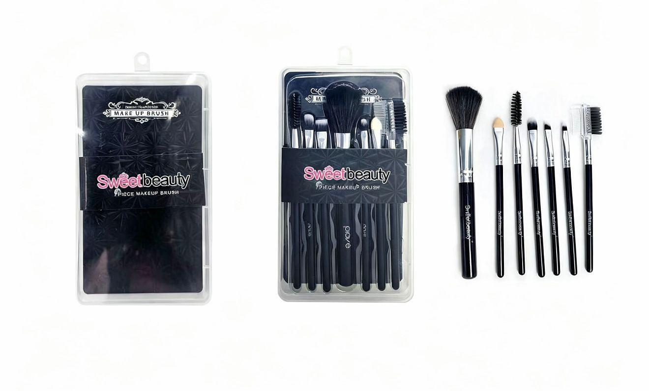 KIT Pincéis SWEET BEAUTY 7 peças em cada kit/ (DÚZIA) pincel de blush,pincel de base,pincel de corretivo,escova de sobrancelha,pincel de sombra,pente para cilios,escova de cilios 1