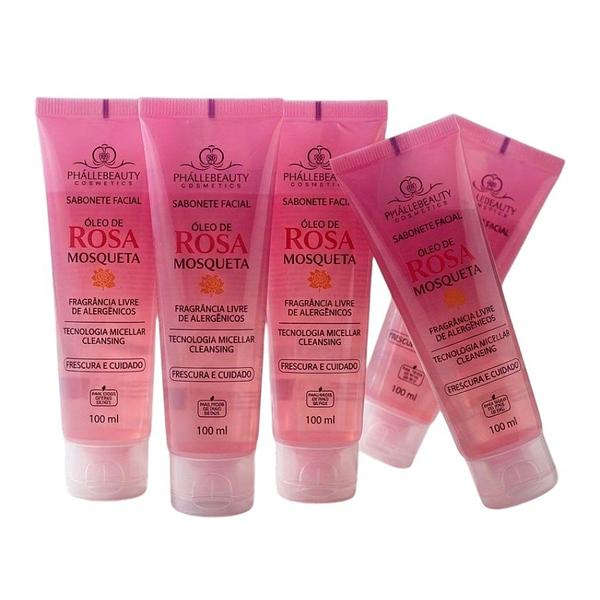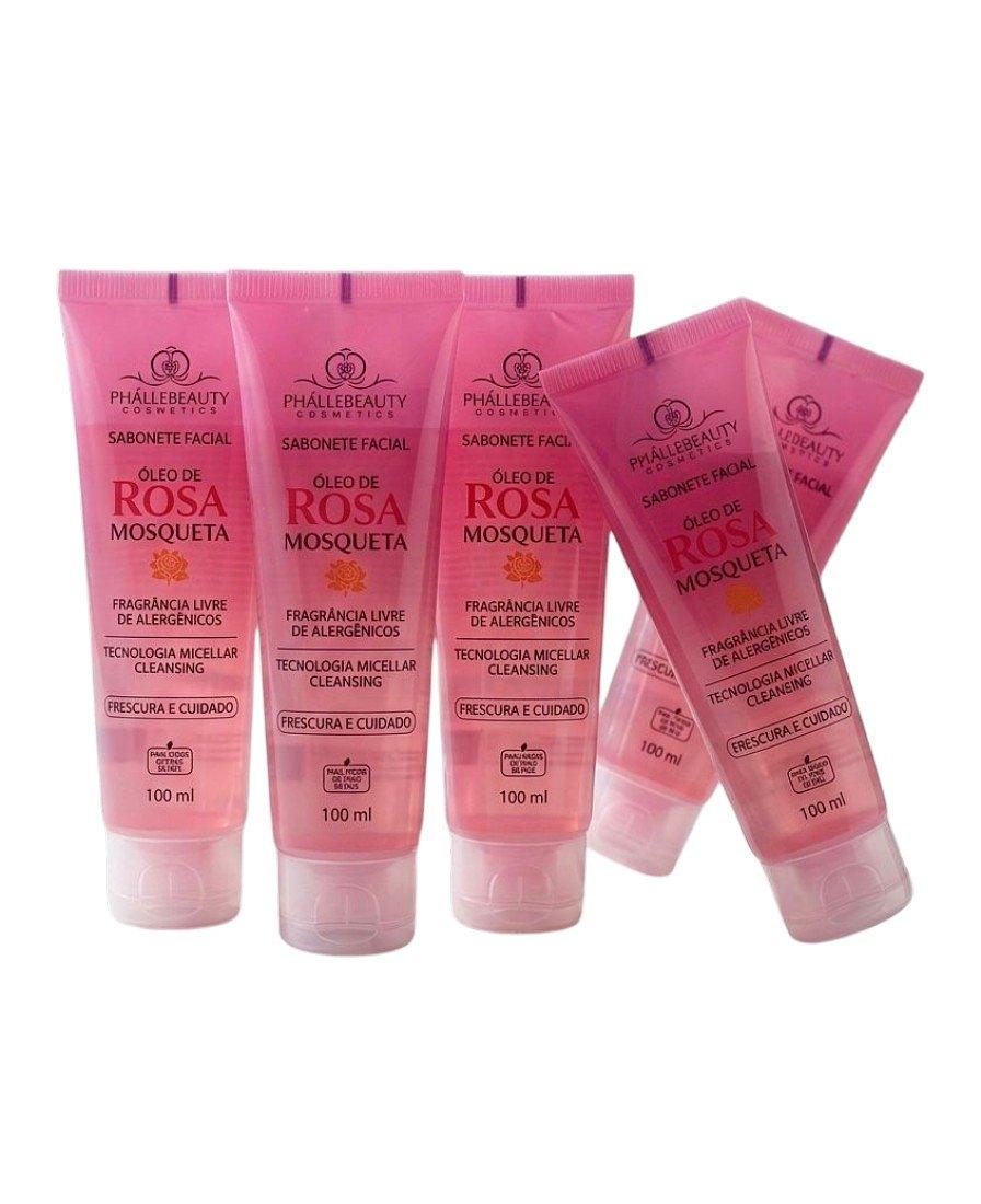 Sabonete Facial Óleo de Rosa Mosqueta Phállebeauty limpa suavemente a pele, removendo impurezas e oleosidade sem ressecar.
